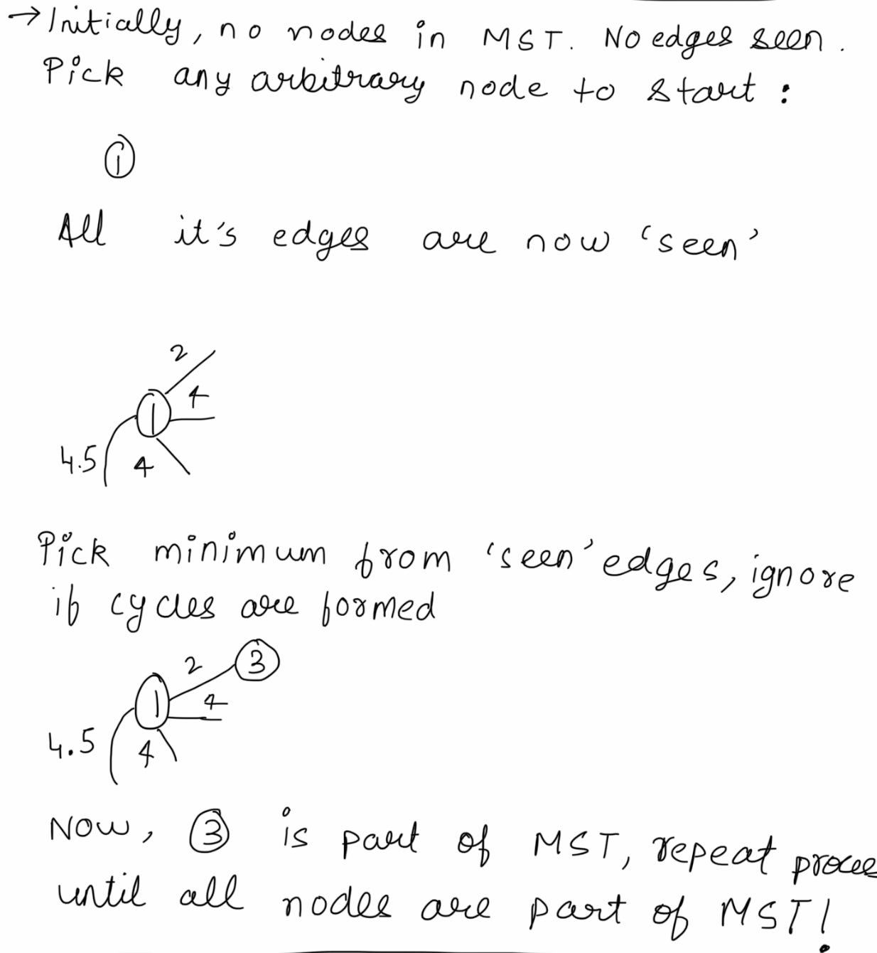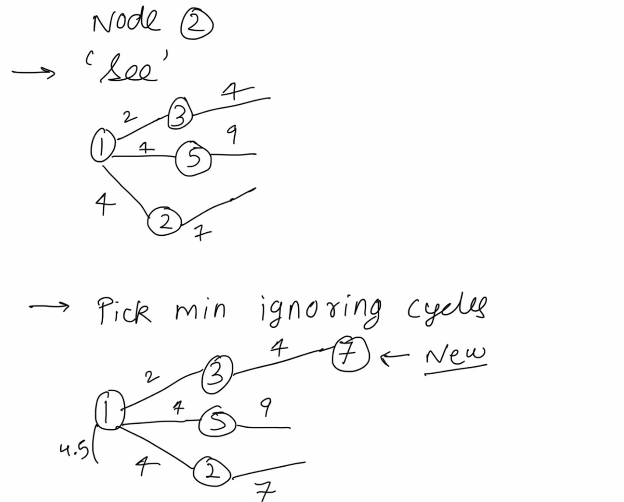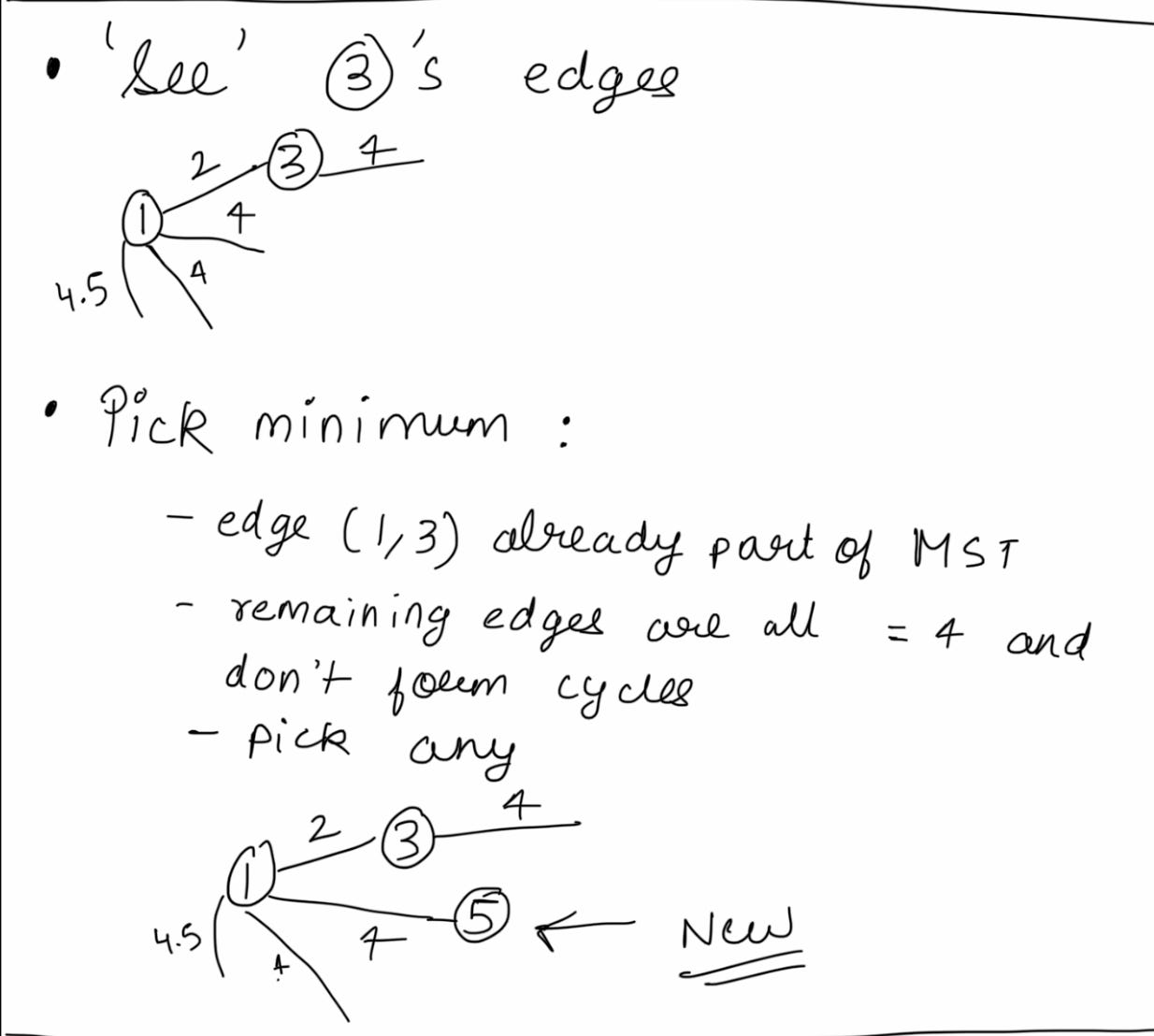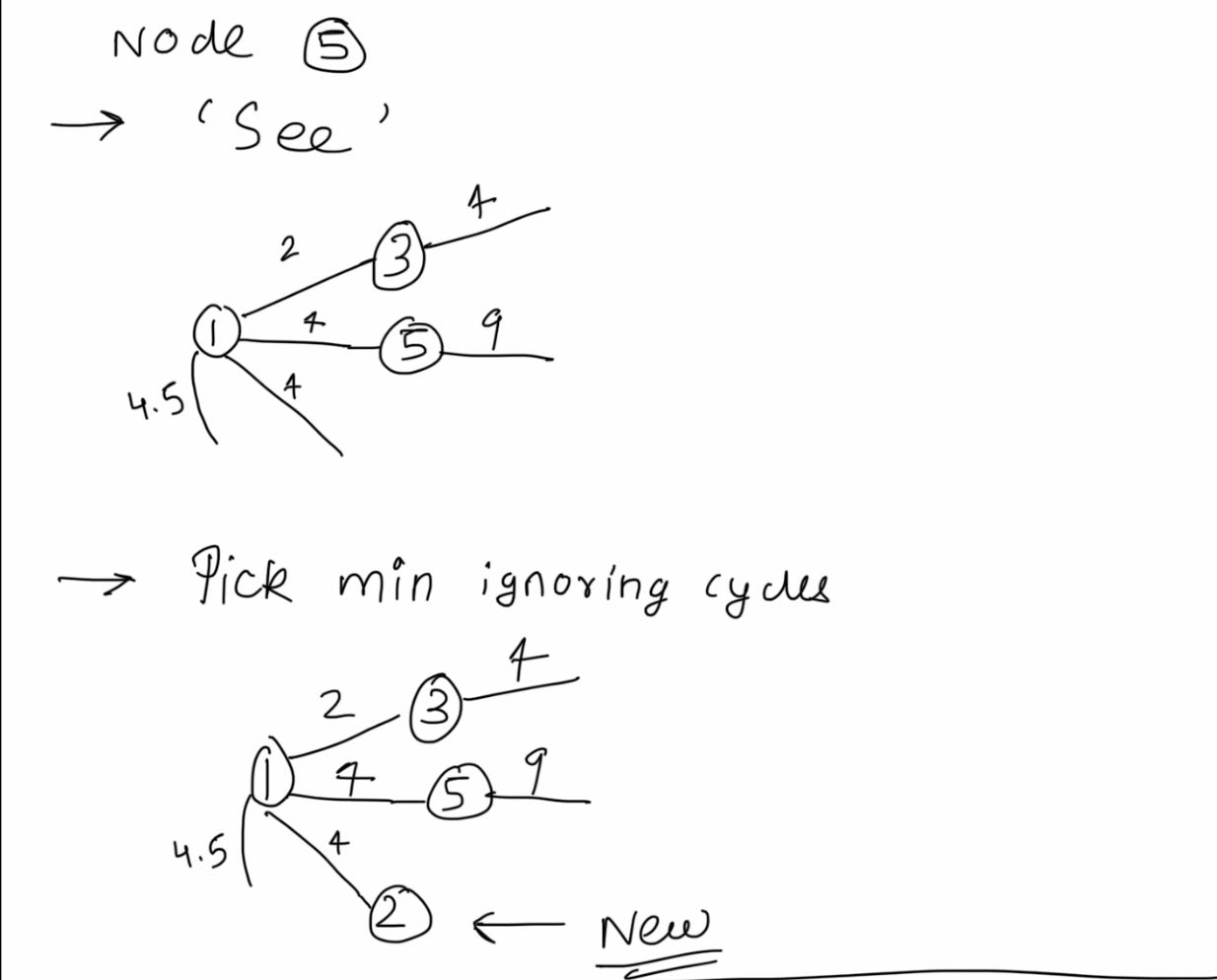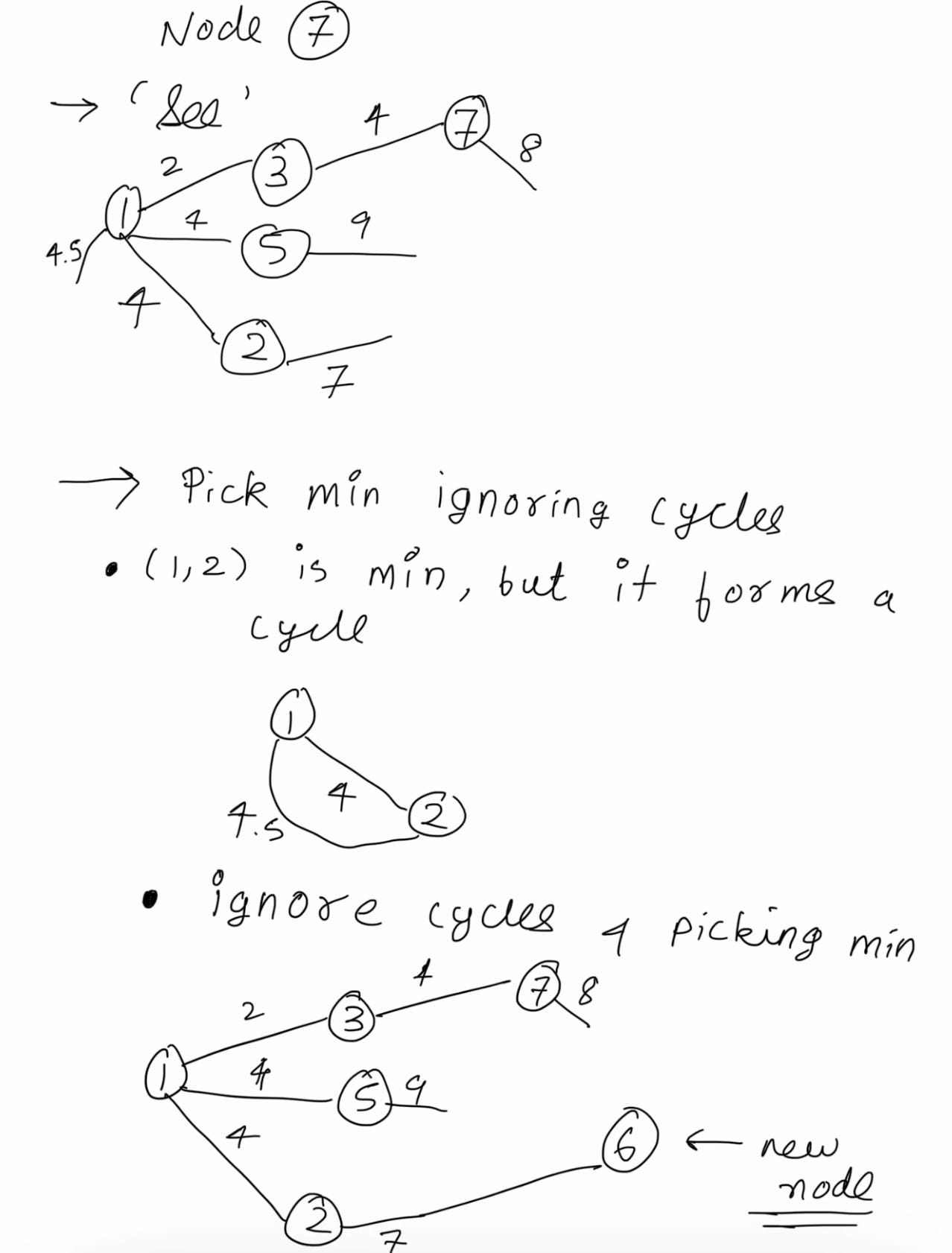Repeat with me: see, pick and ignore. Note that ignore is conditional - only if cycles are formed. We will soon see an example.