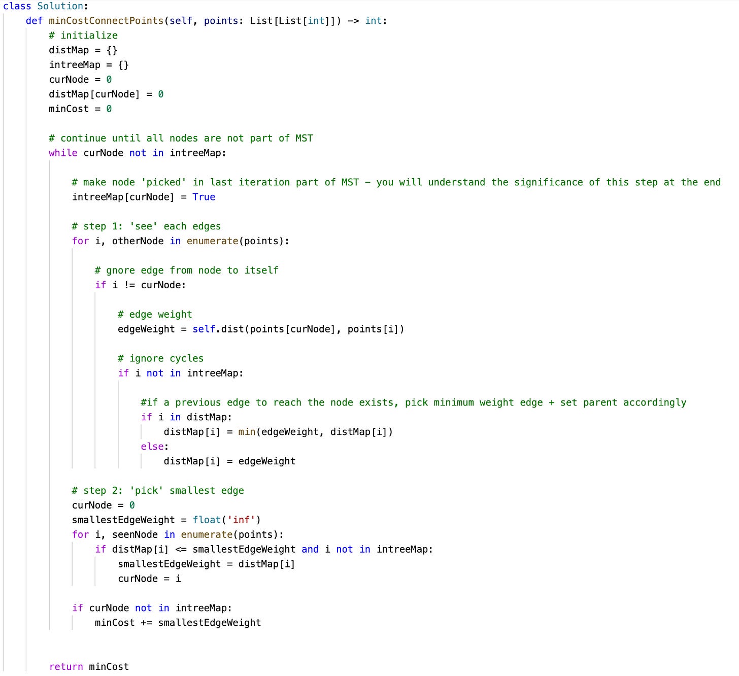 Solution for Min Cost To Connect All Points using Prim’s Algorithm