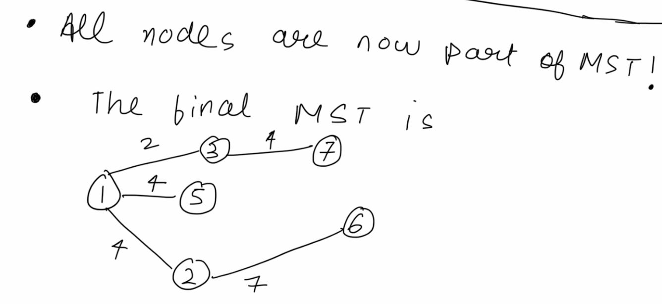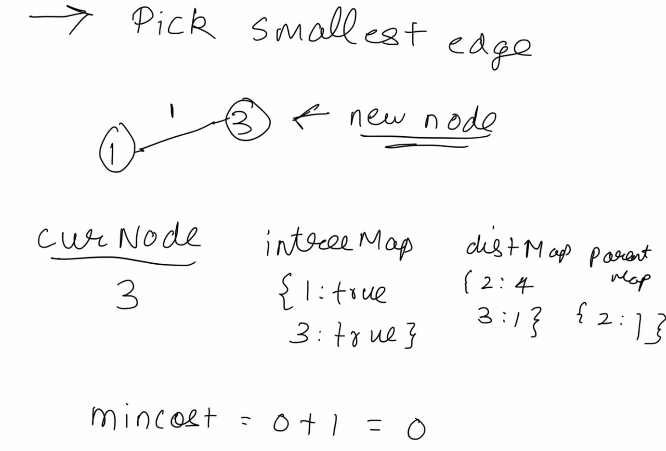 Bring all nodes into the MST by picking the minimum cost edge from all edges seen so far