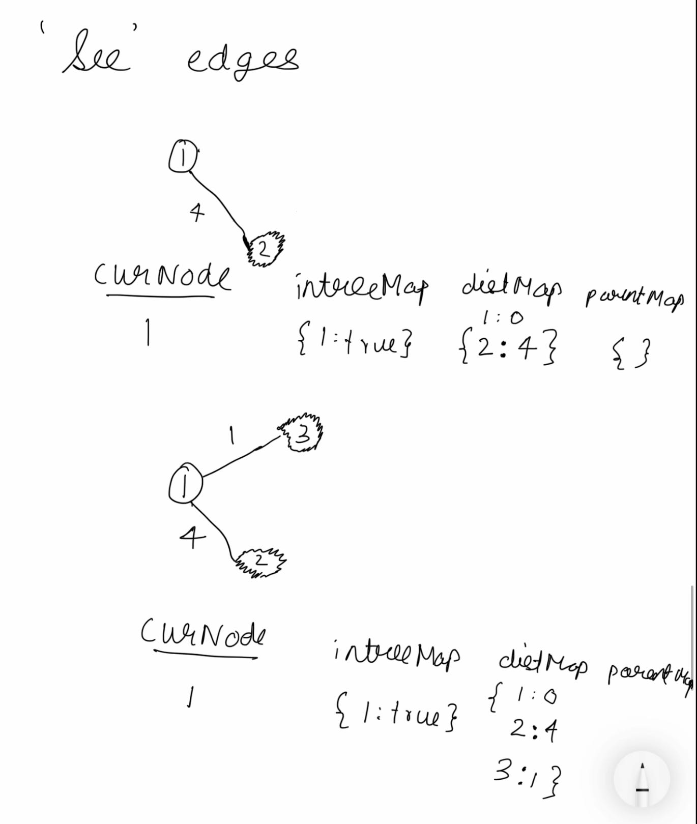 Correction: In the ‘Step 2’ for loop, you will also check if seenNode is not in intreeMap: