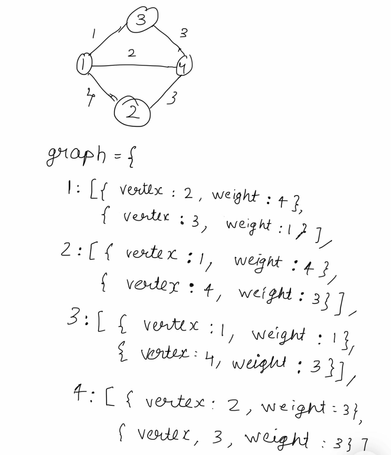 Let’s run through one iteration of our code for this graph: