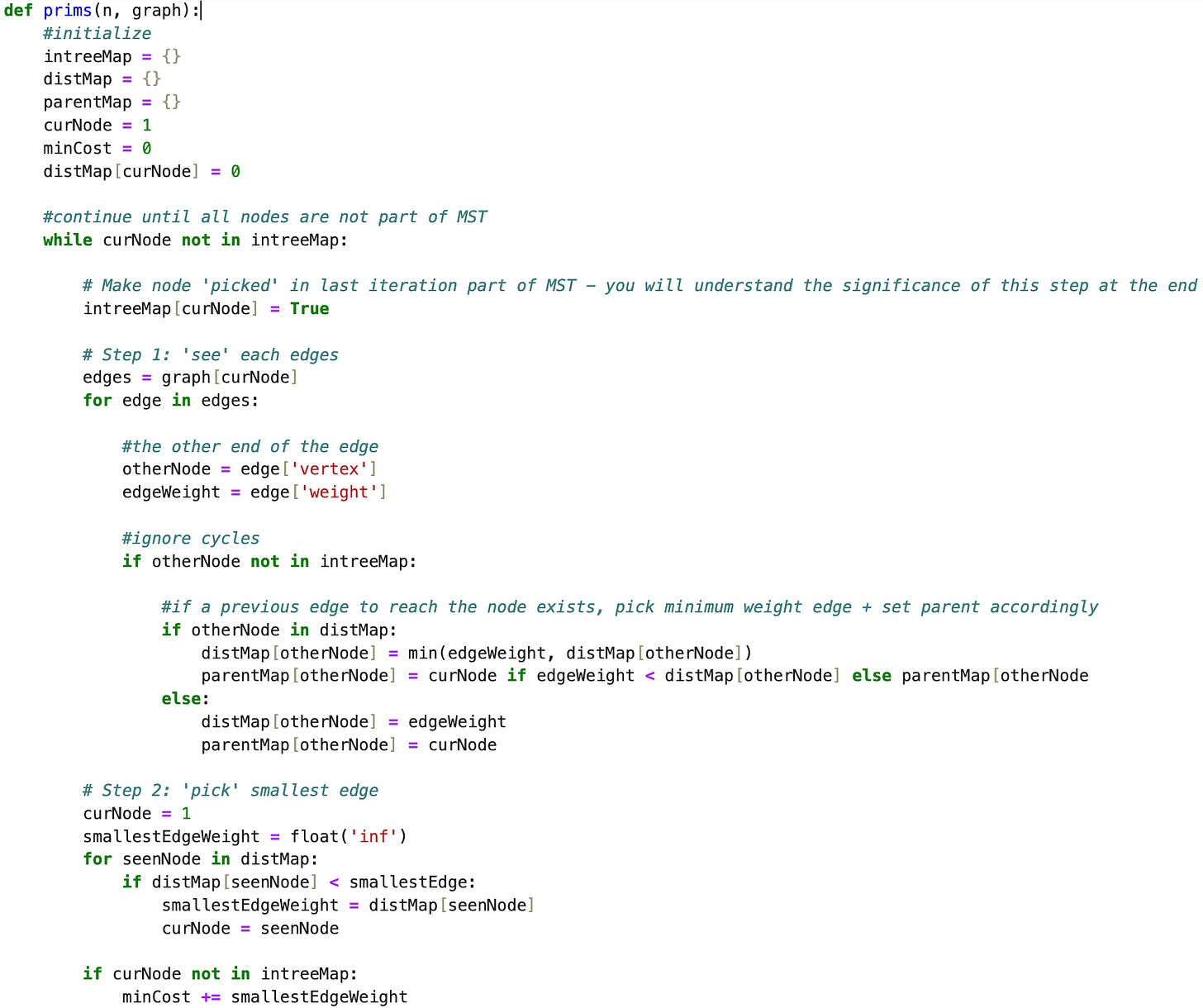 if distMap[seenNode] < smallestEdge and seenNode not in intreeMap: